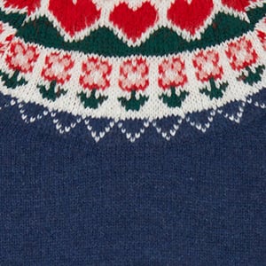 冬の空気に映えるノルディックパターンのジャカードセーター。