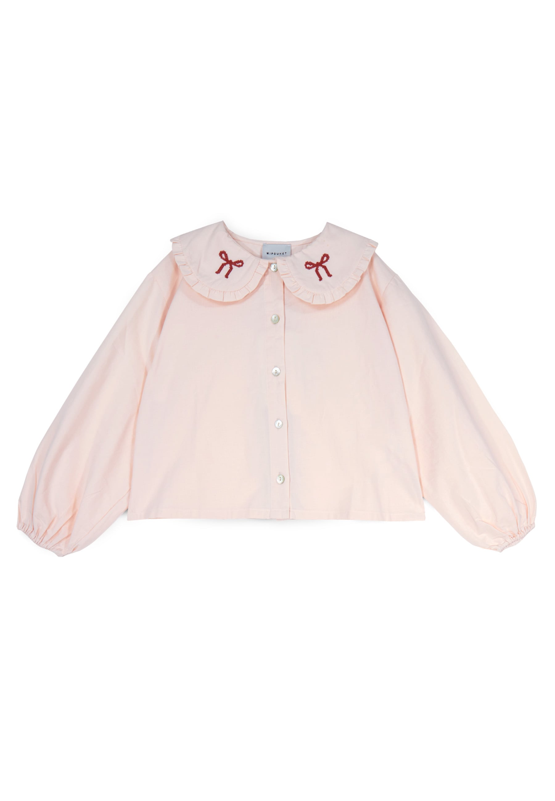 ふんわりと広がるシルエットに、丸襟と赤いリボン刺繍が愛らしいFELICIA BLOUSE。