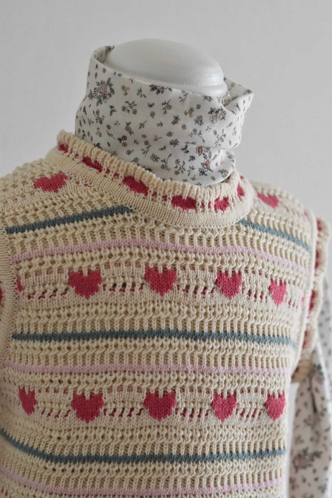 ピンクのハート柄が散りばめられた、可愛らしいニットベスト。コットンとウールをブレンドした柔らかな糸で仕立てられ、着心地もあたたか。シンプルなトップスやワンピースに重ねるだけで、秋冬コーデに甘さとクラシカルな雰囲気をプラスしてくれます。