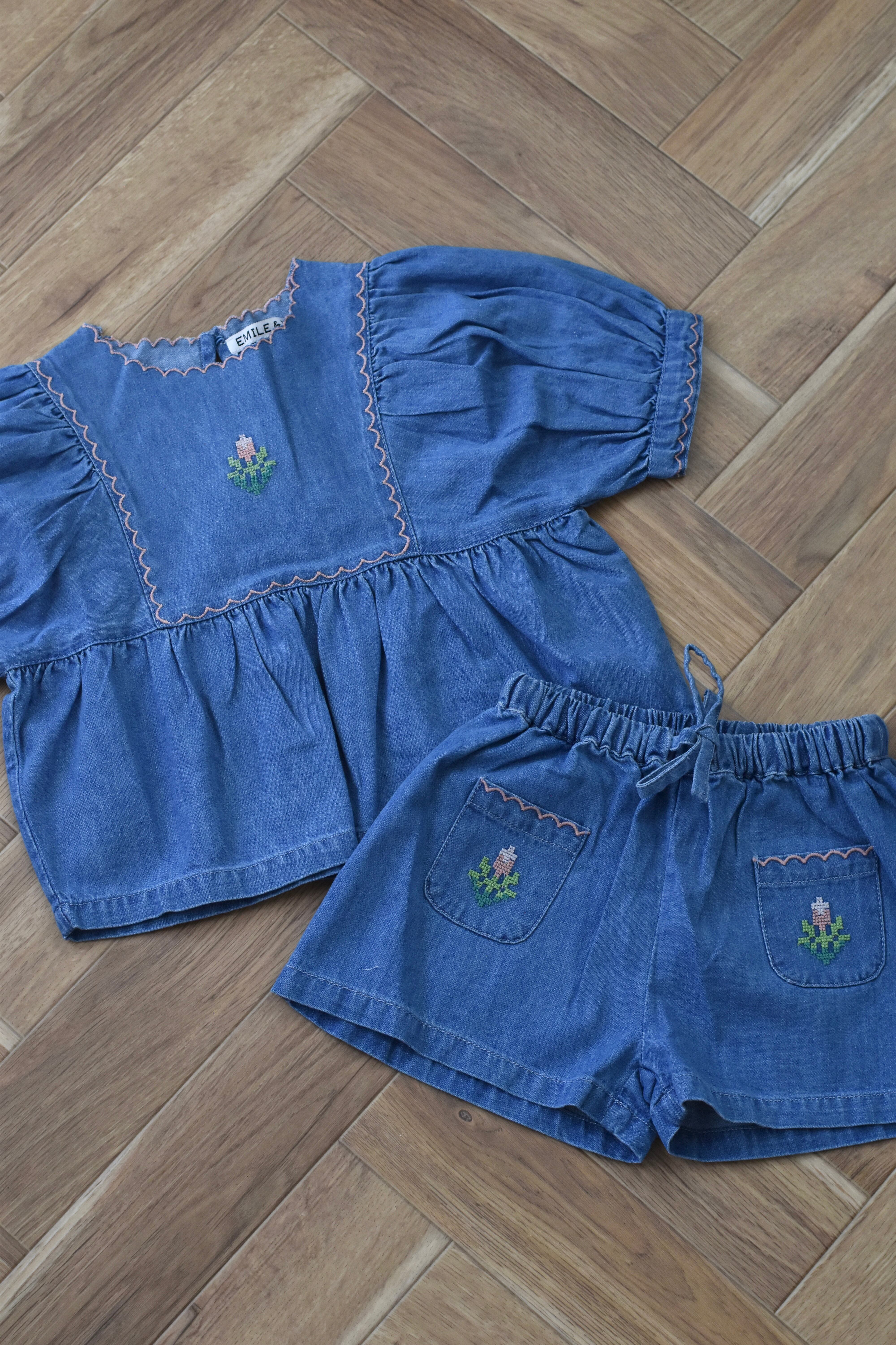 【EMILE&IDA】Blouse Embroidered denim flower