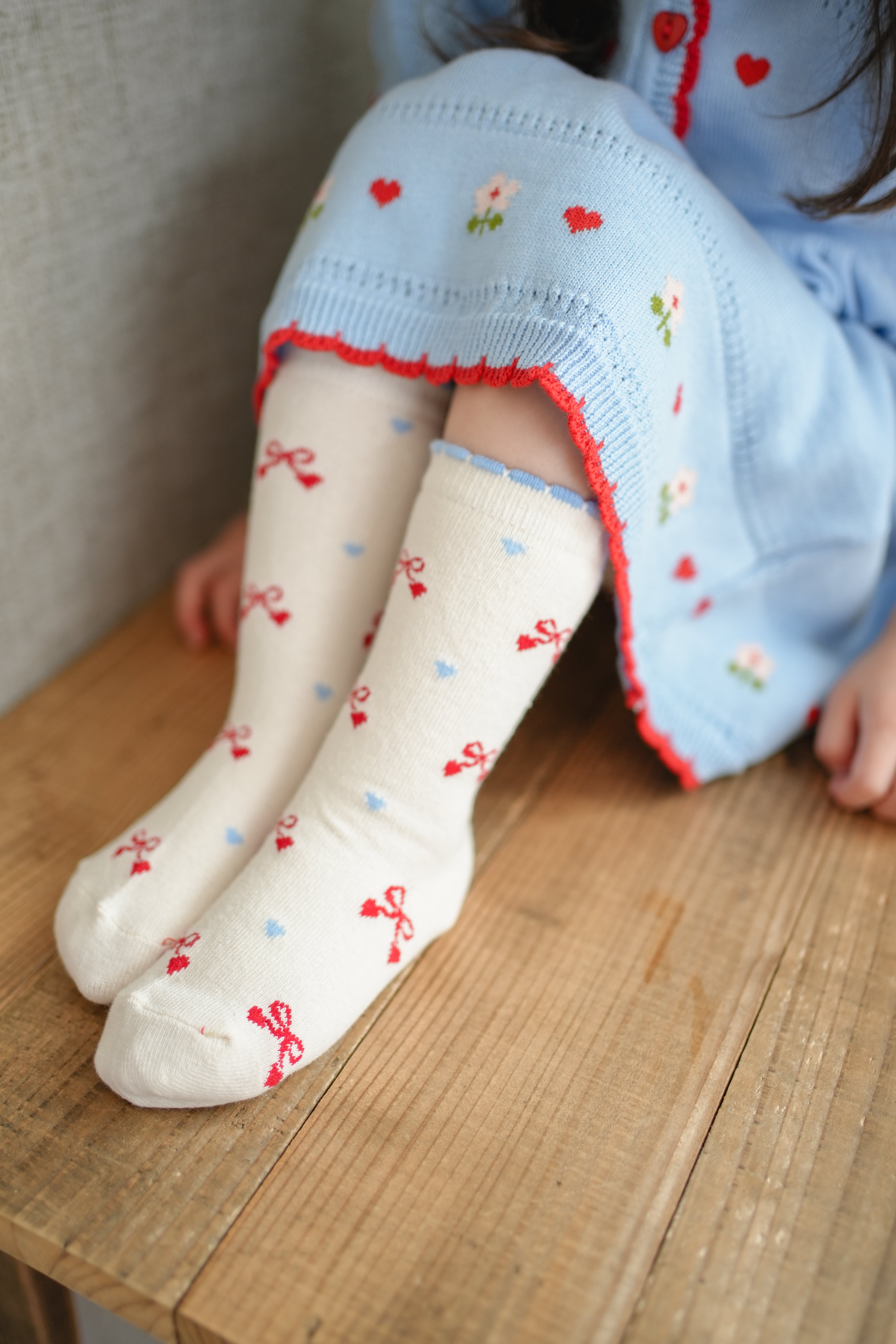配色を効かせたフリルエッジと可愛らしい柄が足元を華やかに演出します。