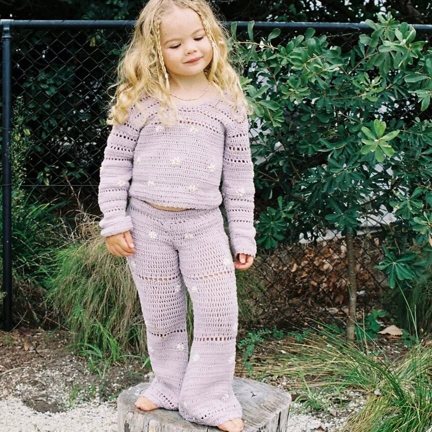 Daisies crochet knit pants lavender
