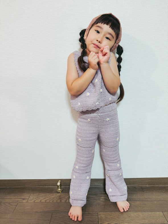 【Nothing But Amor】Daisies crochet knit pants lavender